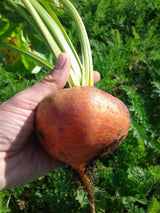 Racine ronde, jaune, sucrée, tendre et à texture fine. Aussi bonne à consommer crue que cuite. Elle est succulente râpée en salade, cuite 'aldente', en marinades ou en conserves. Tout au long de la saison de croissance, vous pouvez récolter une partie de son délicieux feuillage et l’employer en salade ou cuit comme des épinards. Bonne plante compagne pour le haricot, le chou et la laitue. Évitez cependant de la semer près des haricots à rames (grimpants).