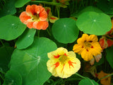 Fleurs comestibles oranges, rouges et jaunes. Plant nain. (Non grimpant).