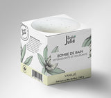 Fizzy and foaming vanilla bath bomb, coloured naturally and scented with certified organic natural fragrance.