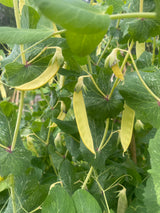 Golden Sweet is a delicious variety of stringless yellow snow peas. It has a very long production season and produces magnificent flowers. They can be dried for soup if you find a few that have escaped your harvest.