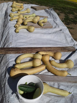 Since gardeners don't use machinery to harvest their crops, there is no reason why you should deprive yourself of the remarkable flavour profile of the Canada Crookneck squash!