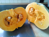The Sweet Keeper gets its name from its two main characteristics, 1: it is sweet! It's a really delicious, sweet and creamy winter squash, similar to the Blue Hubbard and Marine di Chioggia, with an even sweeter flavour and finer flesh. So sweet that when I cook it, people often ask me: "Did you add maple syrup?" And 2: it's a keeper! It can easily be stored for up to 18 months on the kitchen counter.