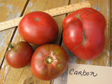 Carbon is a beautiful black tomato with few imperfections and excellent rich flavour. Dark red to brownish fruit with green collar, medium to large in size, not very prone to cracking. This variety appealed to me because it is actually one of the darkest black varieties. This variety has finally won several tasting contests and its flavour is often praised by tomato lovers as being one of the best.